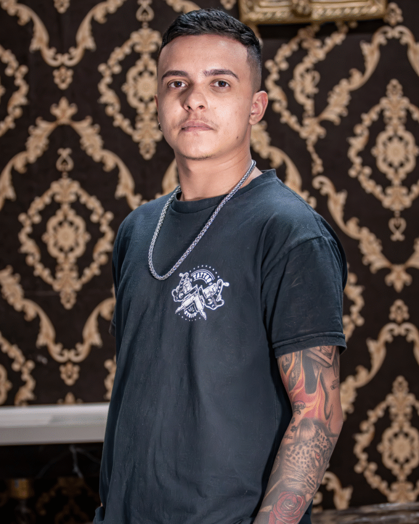 Oii, sou o Gabriel, desde criança, o desenho sempre foi minha maior paixão e foi ele que me guiou até a arte da tatuagem. Há mais de 7 anos, vivo exclusivamente da tatuagem, transformando histórias, ideias e sentimentos em arte.